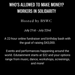 Who's allowed to make money? The Black Sex Worker Collective is hosting an event on July 21st and 22nd, Who’s Allowed to Make Money? Workers in Solidarity. This is a 22-hour, online-extravaganza,...