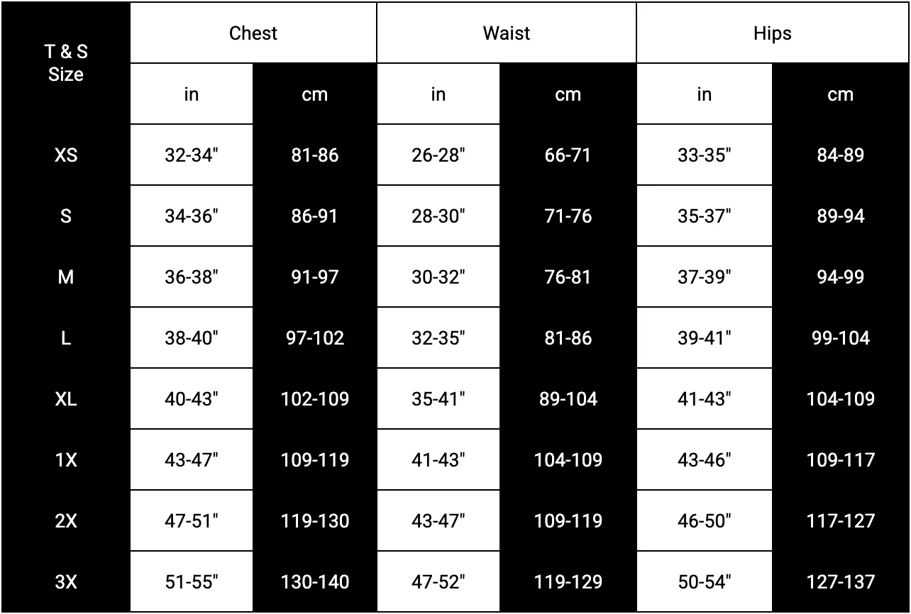 *For Bodysuits, we suggest sizing up if you have a longer torso.