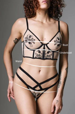 Underbust: Just underneath your boobs, measure snugly around your ribcage, keeping the tape parallel across your back.